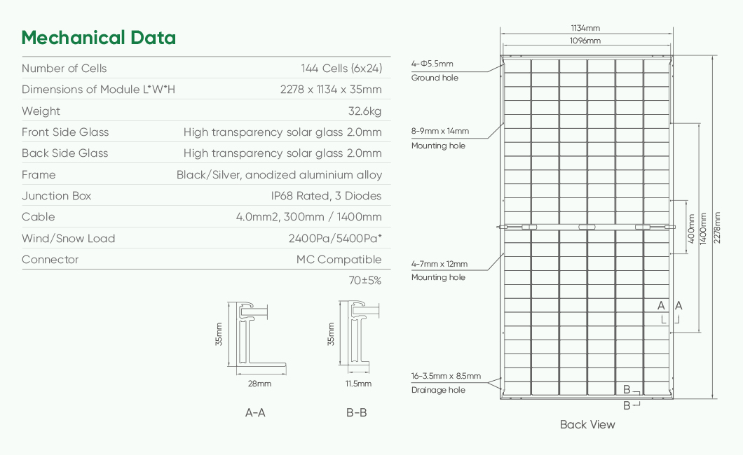 Maximum Power (Pmax/W) | | | | | | | | Maximum Power Voltage (Vmp/V) | | | | | | | | Maximum Power Current (Imp/A) | | | | | | | | Open Circuit Voltage (Voc/V) | | | | | | | | Short Circuit Current (Isc/A) | | | | | | | | Module Efficiency (%) | | | | | | | | Power Output Tolerance (W) | | Temperature Coefficient of Isc | | Temperature Coefficient of Voc | | Temperature Coefficient of Pmax | |
